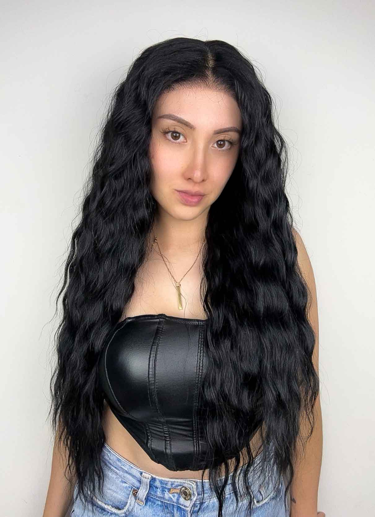 Peluca indetectable LACEFRONT GLUELESS PREMIUM con movimiento de la raíz a cualquier dirección, echo de fibra premium natural resistente al calor que asemeja ser igual al cabello humano, Al ser una peluca glueless, o necesita pegamento para su uso ni ningun otro adherente, lleva un lace amplio en todo la parte superior para que puedas peinar la raíz de tu peluca a cualquier dirección, línea y nacimiento de cabello super realista! brindándote un aspecto natural de acabado mate en alta calidad dándote un cabello suave y sin enredos. La peluca lleva 4 ganchos internos, banda gruesa elastica interna, dos ajustables pequeños y reguladores para adaptar el tamaño en caso la persona lo requiera, El gorro interno es suave y ligero, ideal para personas con sensibilidad en el cuero cabelludo. Se puede lavar, planchar u ondular, La fibra del cabello es suave y manejable, puedes realizarle peinados variados y complejos como colas, medias colas, trenzas desde la raíz, partidos de cabello hasta cortes de peluquería, La estructura interna es transpirable y ligera para que te sientas cómoda al usarlo, Permite su uso diario o para otras ocasiones. Luciendo un cabello espectacular que se vea y se sienta natural.