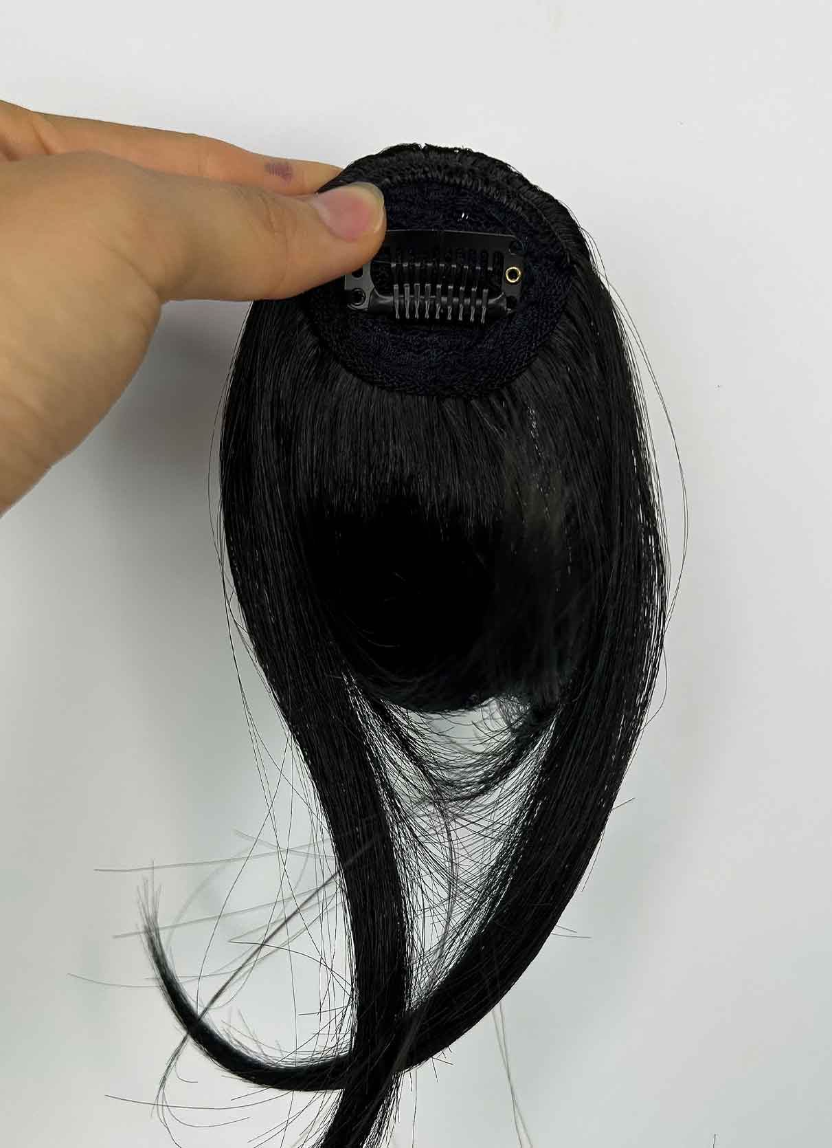Cerquillo postizo de cabello liso premium. Fabricado con fibras de alta calidad que imitan perfectamente el brillo y la textura del cabello natural, sin necesidad de cortar tu pelo puedes tener un resultado al instante. Practico de usar con clip interno para un ajuste completamente seguro. Se puede lavar, planchar y peinar.