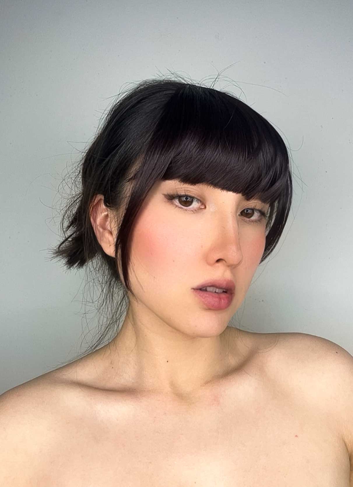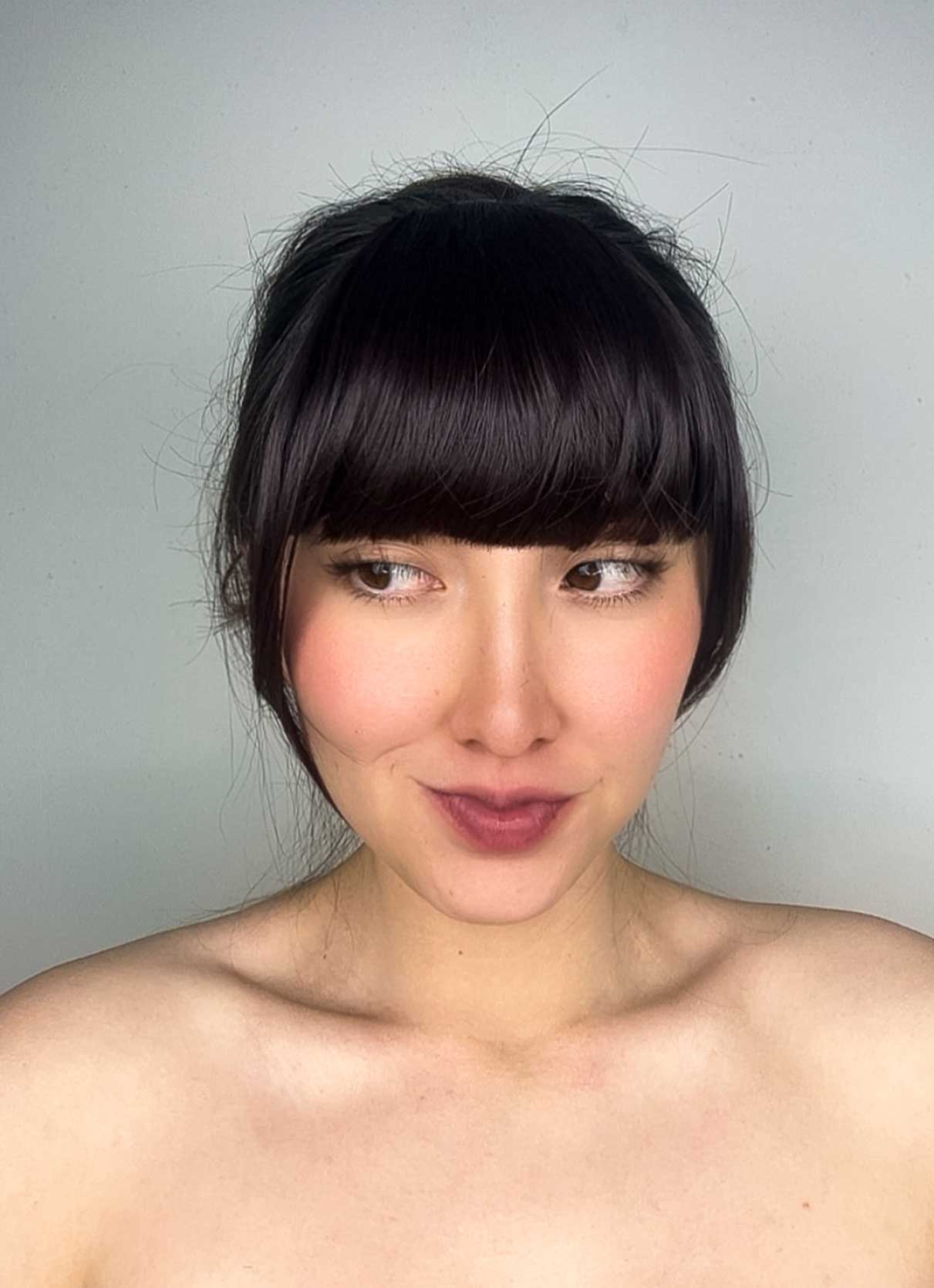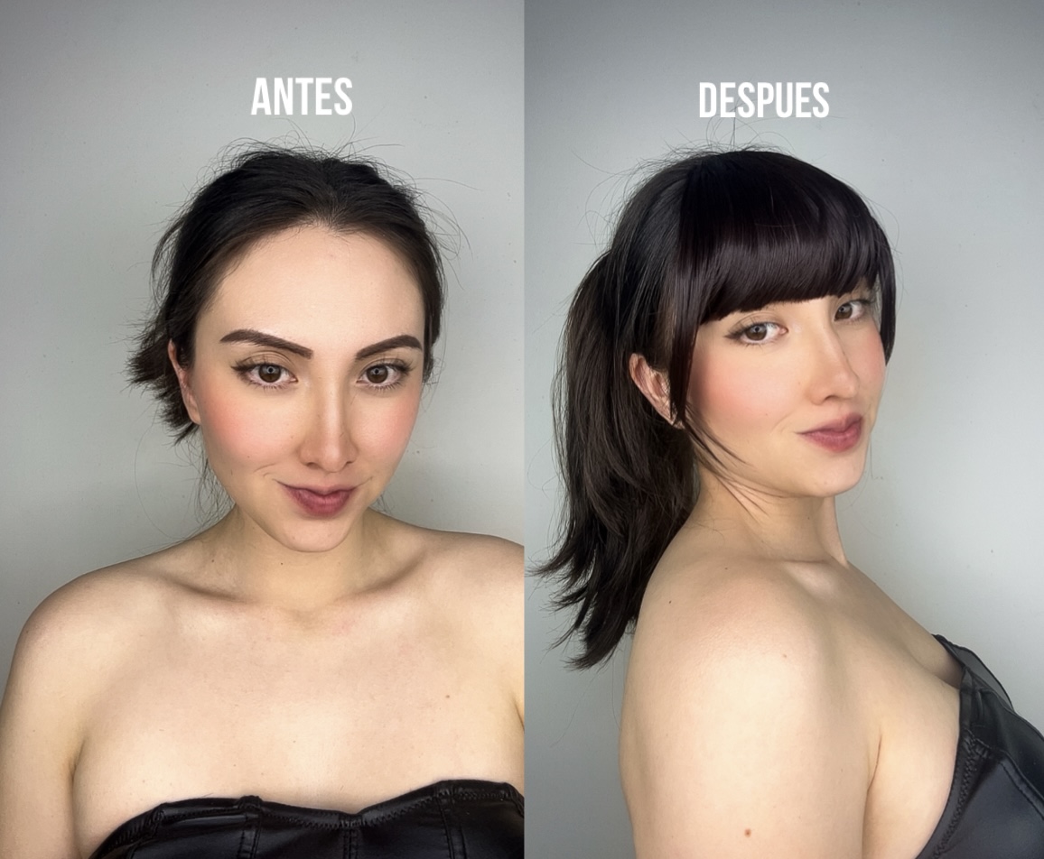 3.Si es necesario puedes cortar un poco de cabello y Listo ya tienes tu cerquillo instalado.