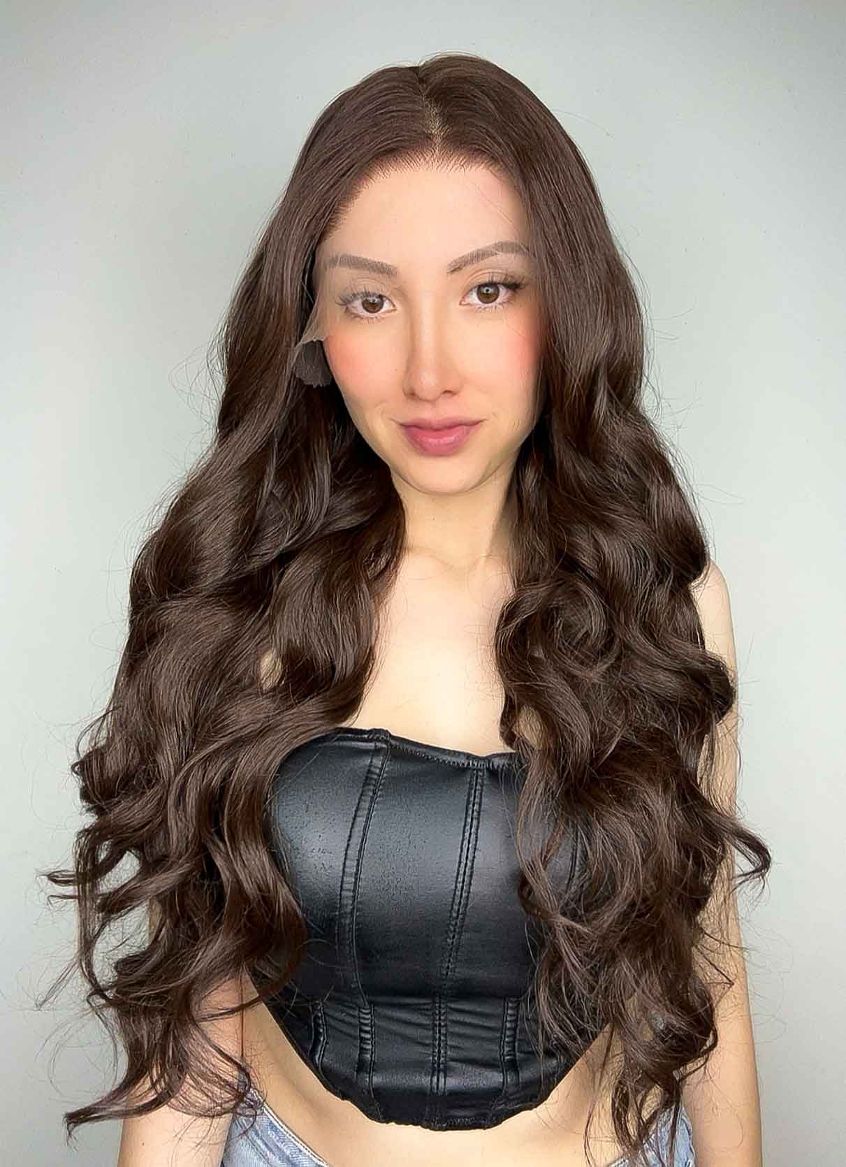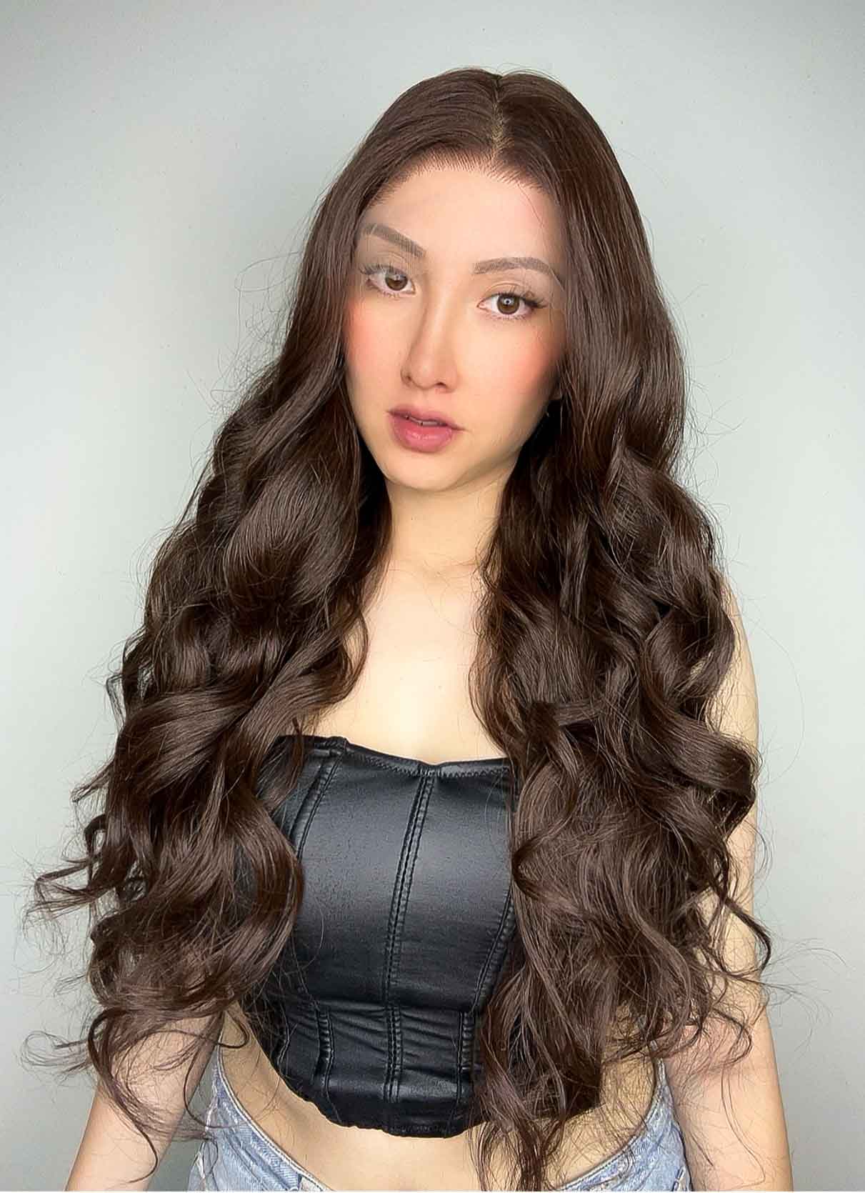 Peluca indetectable LACEFRONT GLUELESS PREMIUM con movimiento de la raíz a cualquier dirección, echo de fibra premium natural resistente al calor que asemeja ser igual al cabello humano, Al ser una peluca glueless, o necesita pegamento para su uso ni ningun otro adherente, lleva un lace amplio en todo la parte superior para que puedas peinar la raíz de tu peluca a cualquier dirección, línea y nacimiento de cabello super realista! brindándote un aspecto natural de acabado mate en alta calidad dándote un cabello suave y sin enredos. La peluca lleva 4 ganchos internos, banda gruesa elastica interna, dos ajustables pequeños y reguladores para adaptar el tamaño en caso la persona lo requiera, El gorro interno es suave y ligero, ideal para personas con sensibilidad en el cuero cabelludo. Se puede lavar, planchar u ondular, La fibra del cabello es suave y manejable, puedes realizarle peinados variados y complejos como colas, medias colas, trenzas desde la raíz, partidos de cabello hasta cortes de peluquería, La estructura interna es transpirable y ligera para que te sientas cómoda al usarlo, Permite su uso diario o para otras ocasiones. Luciendo un cabello espectacular que se vea y se sienta natural.