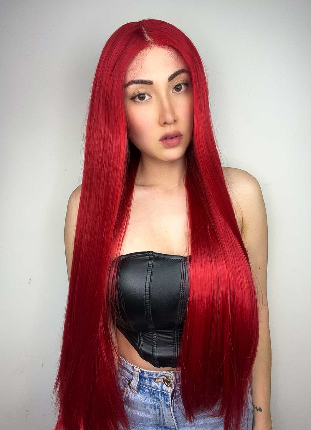 Peluca indetectable LACEFRONT GLUELESS T de raíz fija en una sola dirección y nacimiento de cabello realista, echo de fibra especial 100% natural resistente al calor que asemeja ser igual al cabello humano, Al ser una peluca glueless, no necesita pegamento para su uso ni ningún otro adherente, lleva lace en todo el borde de oreja a oreja brindándote el efecto de una línea de raíz similar al de un cuero cabelludo super realista! Contando con aspecto natural de acabado mate ofreciéndote un cabello suave al tacto. La peluca lleva 3 ganchos internos, dos ajustables y reguladores para adaptar el tamaño en caso la persona lo requiera, El gorro interno es suave y ligero. Se puede lavar, planchar u ondular, La fibra del cabello es suave y manejable, puedes realizarle peinados variados como colas bajas, medias colas, trenzas caídas, peinados con ganchos hasta cortes de peluquería, La estructura interna es transpirable y ligera para que te sientas cómoda al usarlo, Permite su uso diario o para otras ocasiones. Luciendo un cabello espectacular que se vea y se sienta natural.